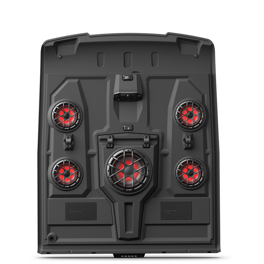 Wet Sounds 5-Speaker Ranger Roof Audio System The easiest audio solution for your 2014 Polaris Ranger Crew is here, Introducing the 600W 5-Speaker Audio Roof! This ready-to-go system was designed to provide powerful audio in a rugged roto-mold construction, while making installation a breeze. Not only does this roof sound amazing, but it also provides extra lighting where you need it most thanks to the front rear LED light bars, as well as a LED cabin light. Enjoy evening riding with the inte...